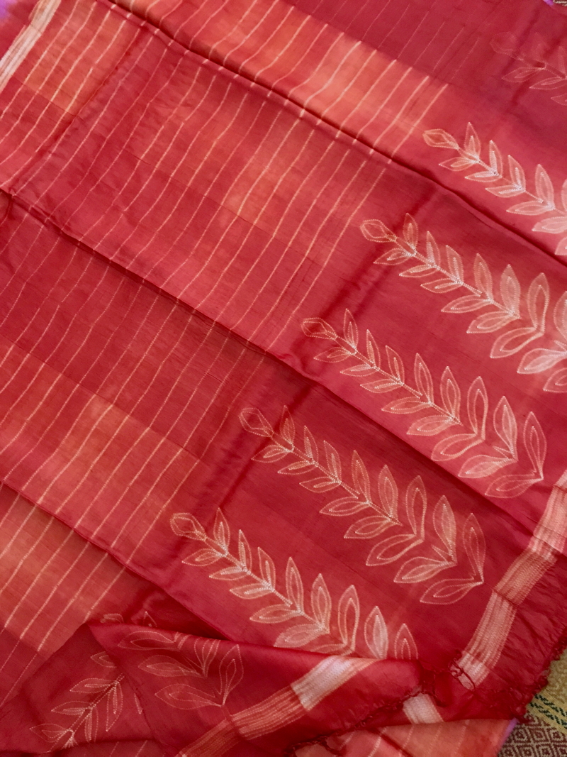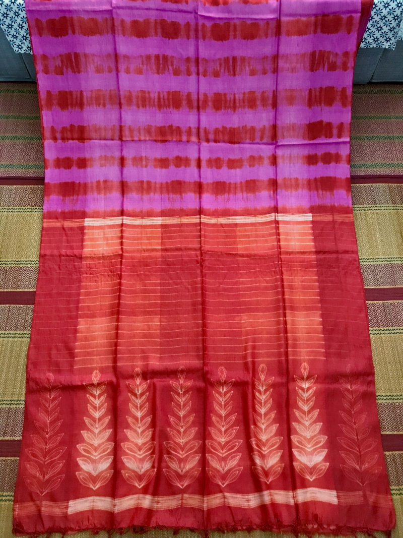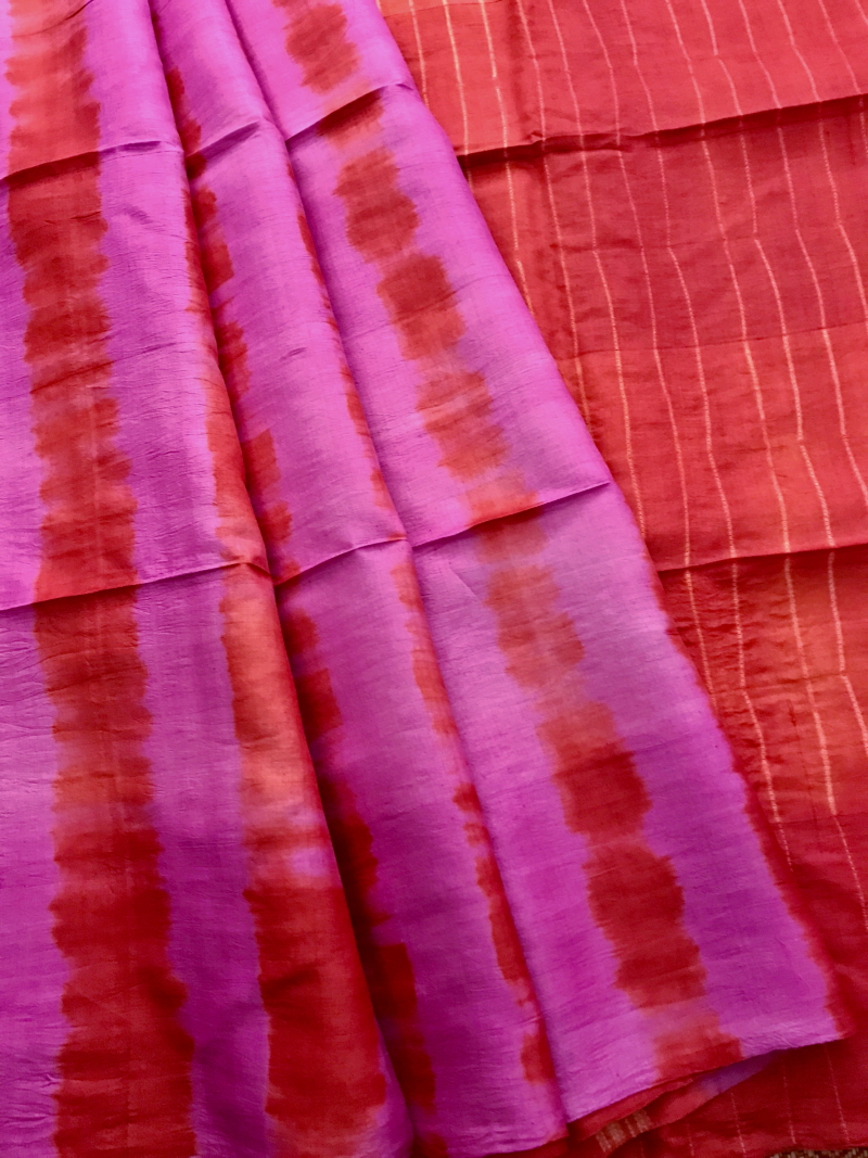 Pink & Vermilion red Shibori Tussar Silk Saree